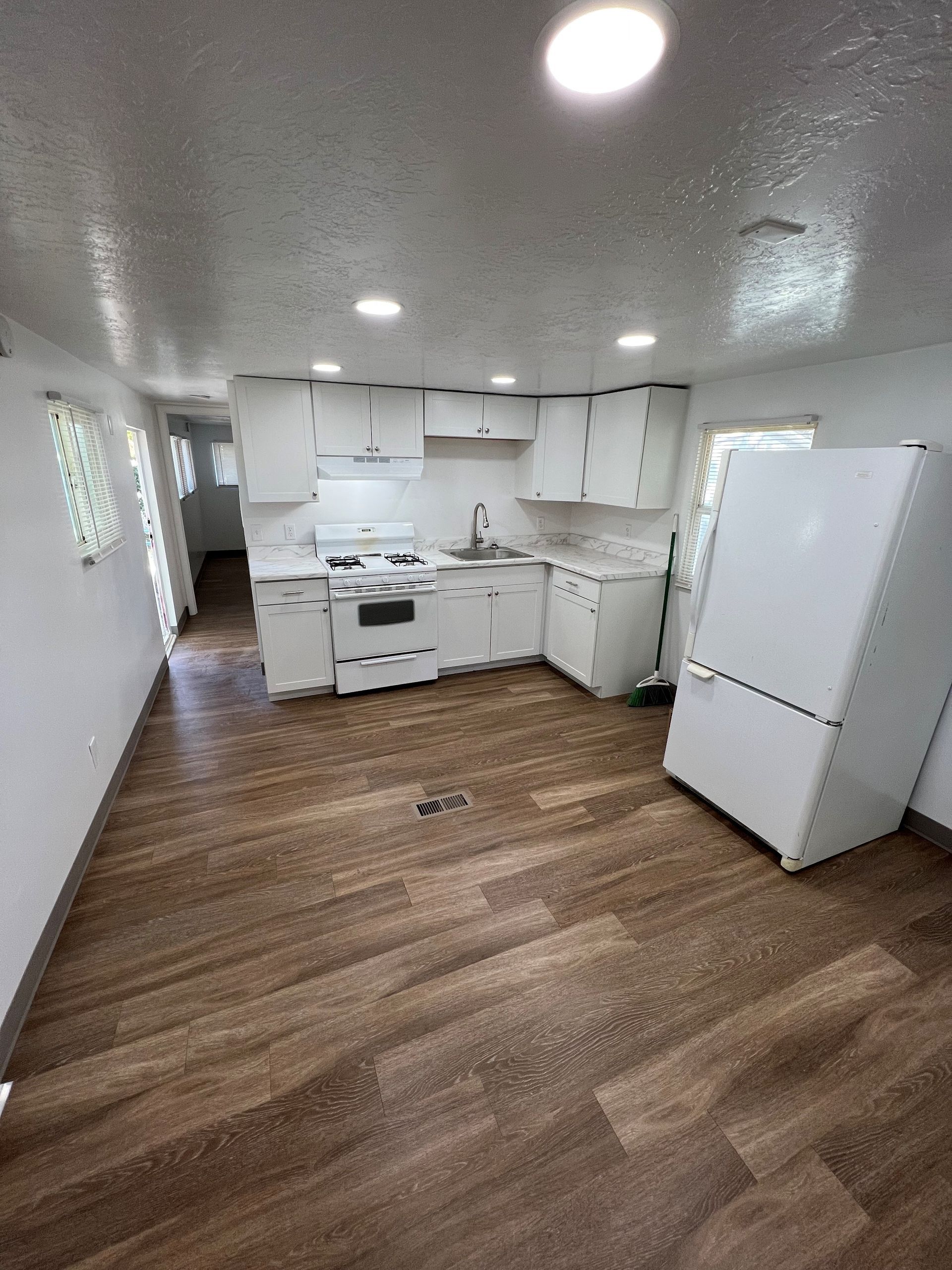 New roof, windows, doors, sheetrock, electrical, plumbing, new furnace, water heater, new kitchen and bathroom, all new flooring.